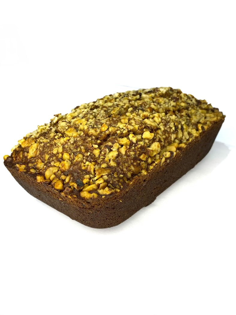 Soft, Moist, and full of rich banana flavor-finished with a crunchy walnut topping. This loaf is pure comfort in every slice.